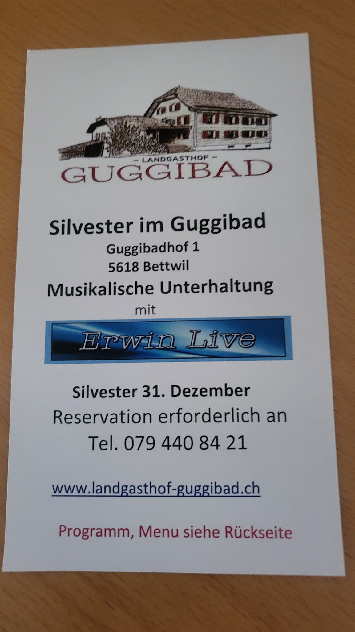 Bitte reservieren: . www.landgasthof-guggibad.ch Natel 079 440 84 21